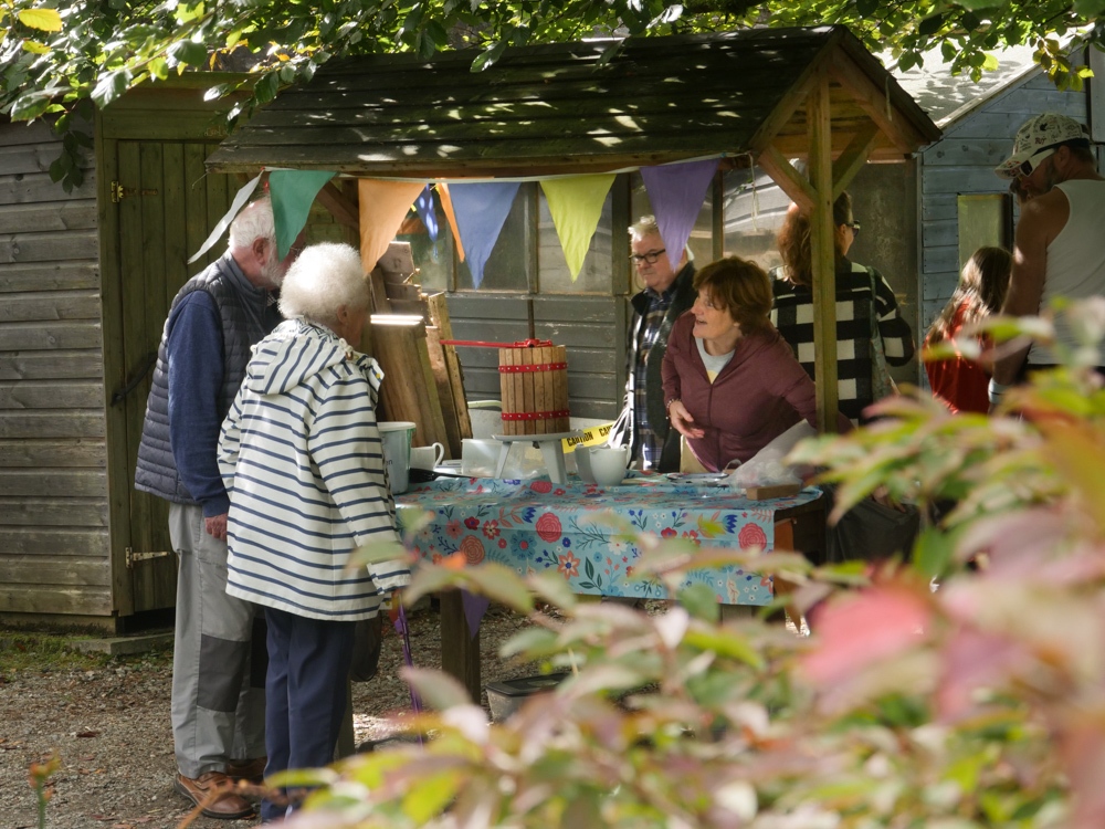 With its beautiful garden backdrop, the event had a lot to offer. Visitors were welcomed with a refreshing glass of fresh apple juice from the garden’s orchard and, as usual, food was in plentiful supply with scrumptious curries and soups created from the garden’s vegetables; burgers; and Ardentinny’s, now famous, mouth watering home baking.