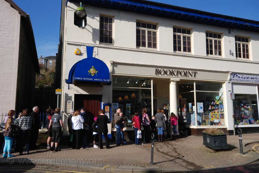 On Saturday, 10 April, Emma, with illustrator Scoular Anderson, was at Bookpoint, Dunoon signing copies of her new book “Nanny McPhee and the Big Bang” whose character she also plays in the book’s movie. Several hundred delighted children queued to chat with the two celebrities and have their books autographed.